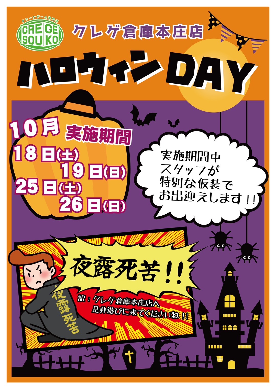 【10月18•19•25•26日の4日間】 #クレゲ倉庫本庄店 では ハロウィンDAY開催します!